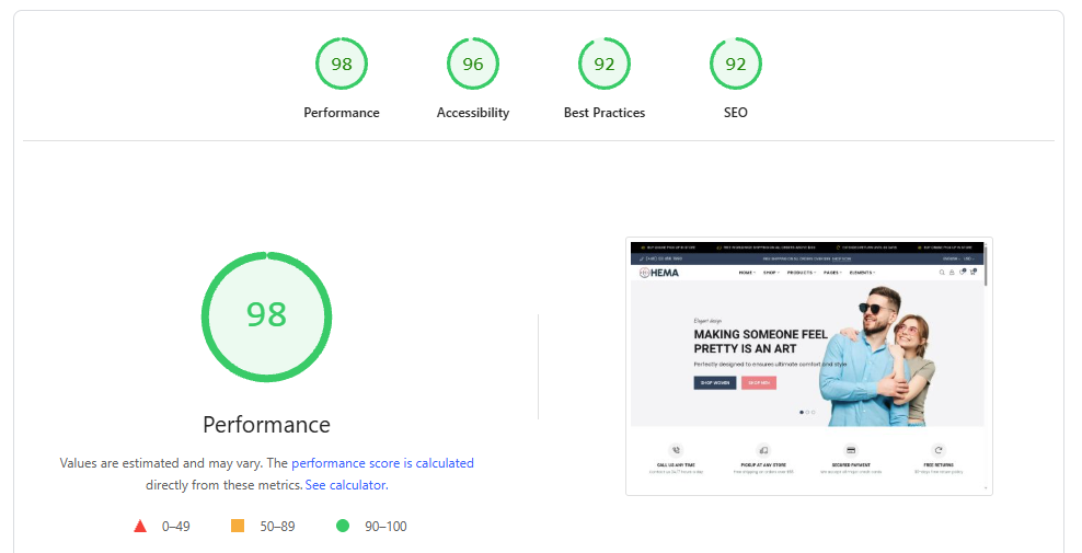 Hema is engineered for speed and better Core Web Vitals performance. The theme is built with modern